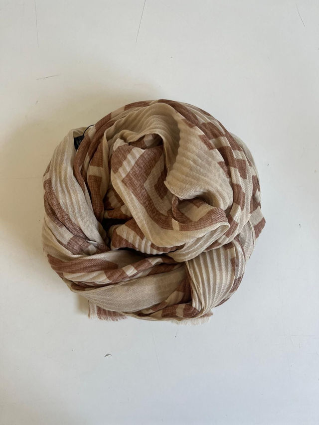 Foulard autunnale con stampa geometrica beige e color cammello con orlo sfrangiato