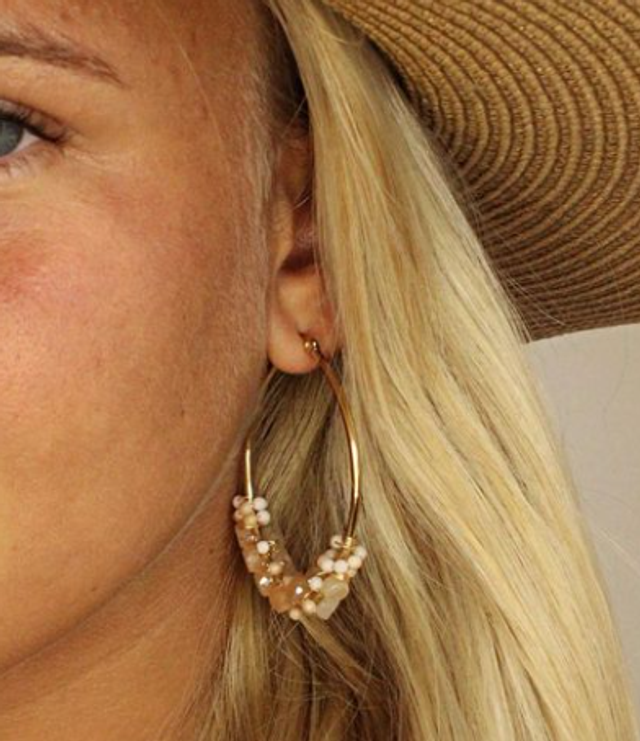 Orecchini Luce color oro ovali, con pietre sui toni neutri, chiusura a clip