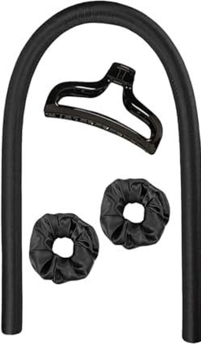 Arricciacapelli senza calore con 2 elastici scrunchie e mollettone, colore nero, effetto raso