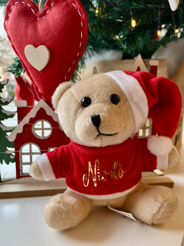 • Orsetto Christmas morbido e tenero con maglietta personalizzabile con nome.